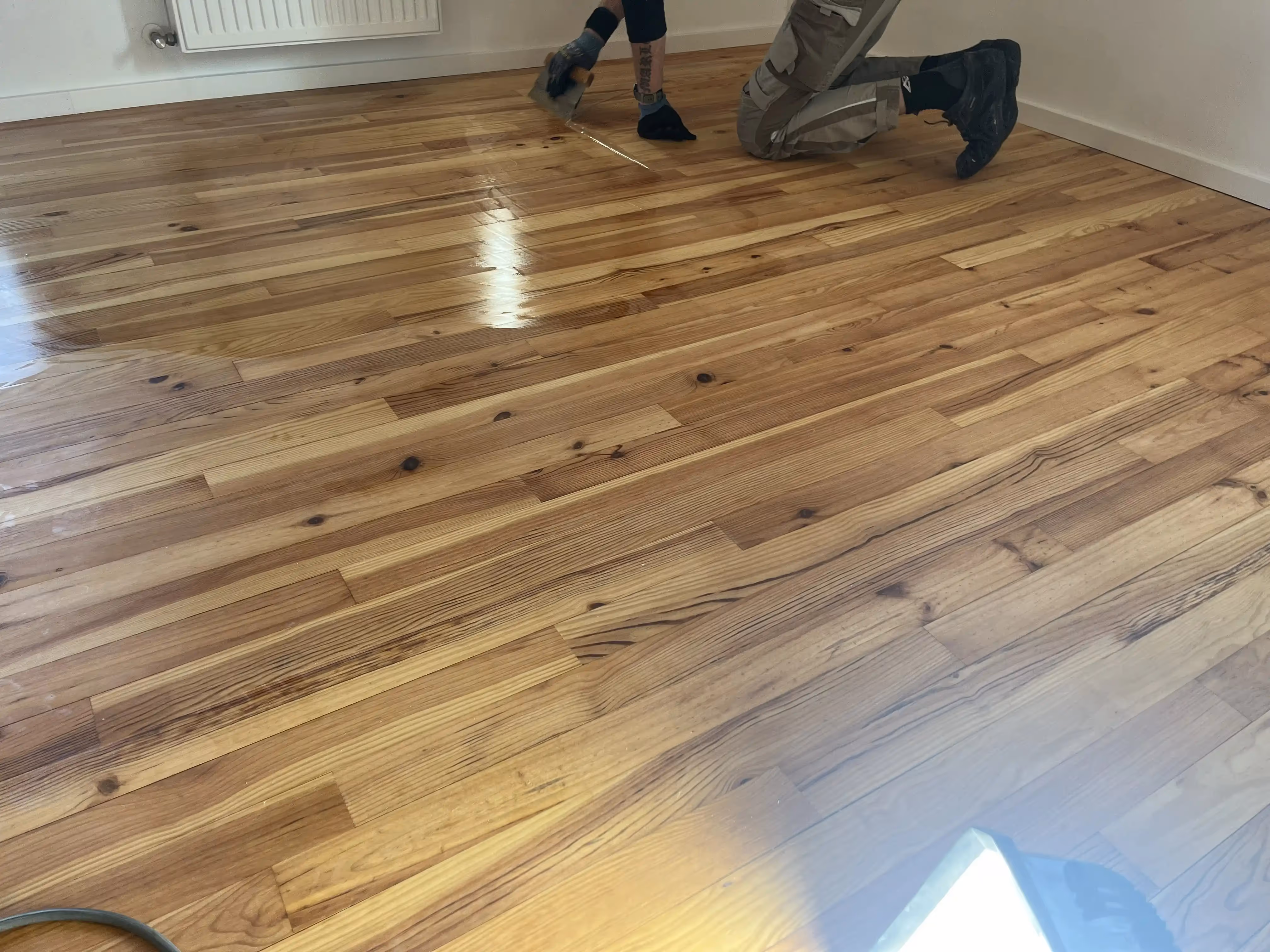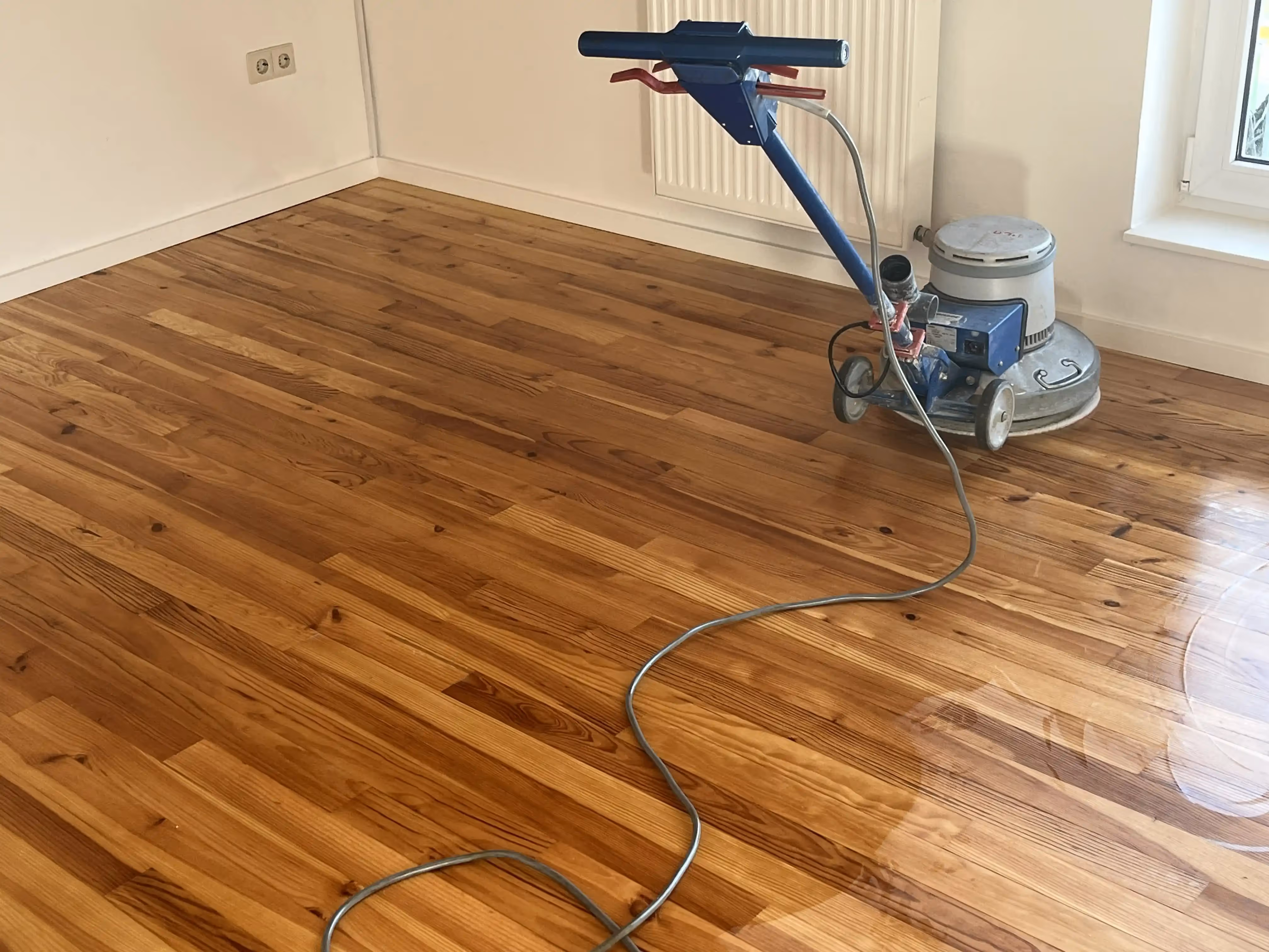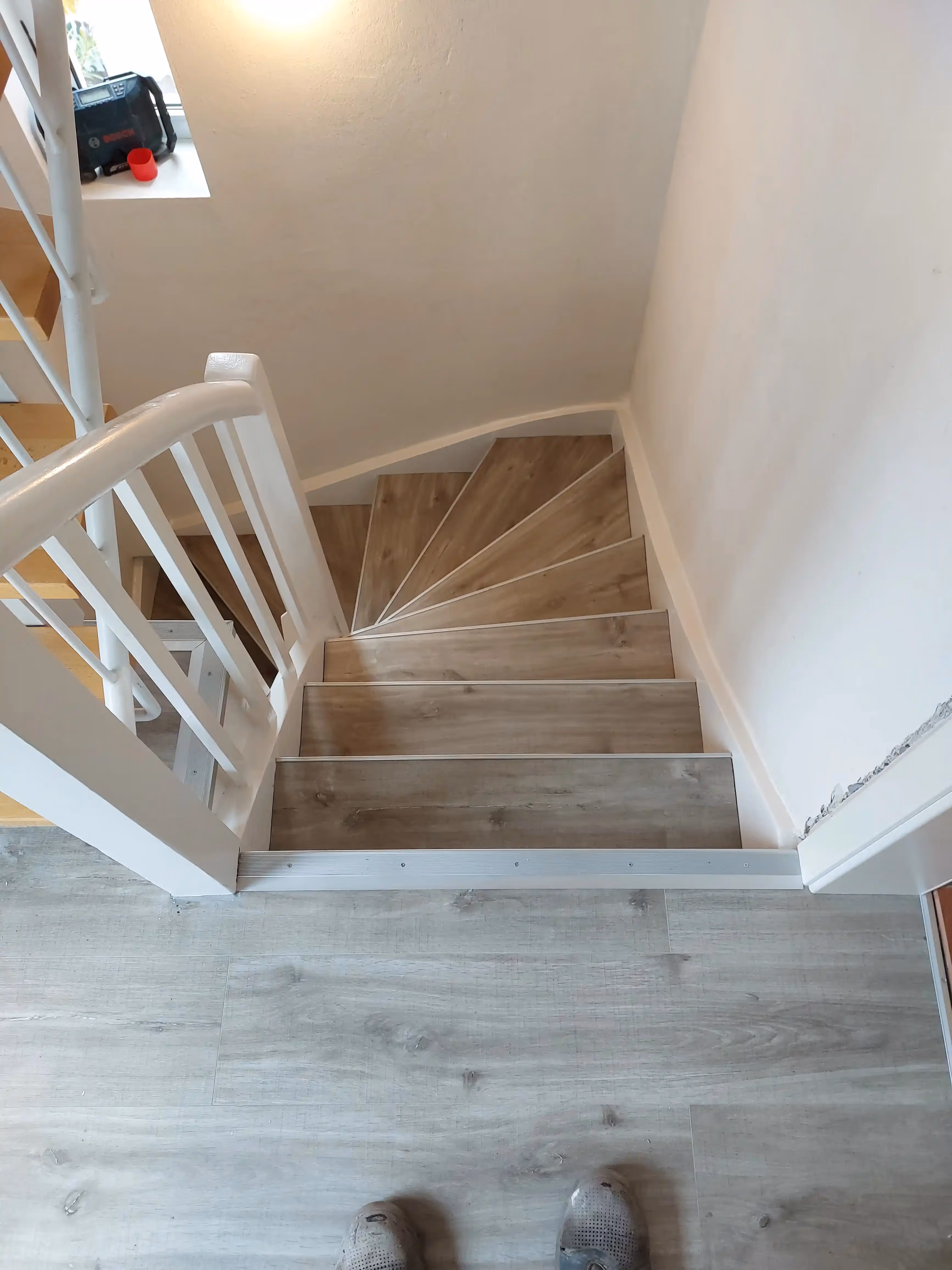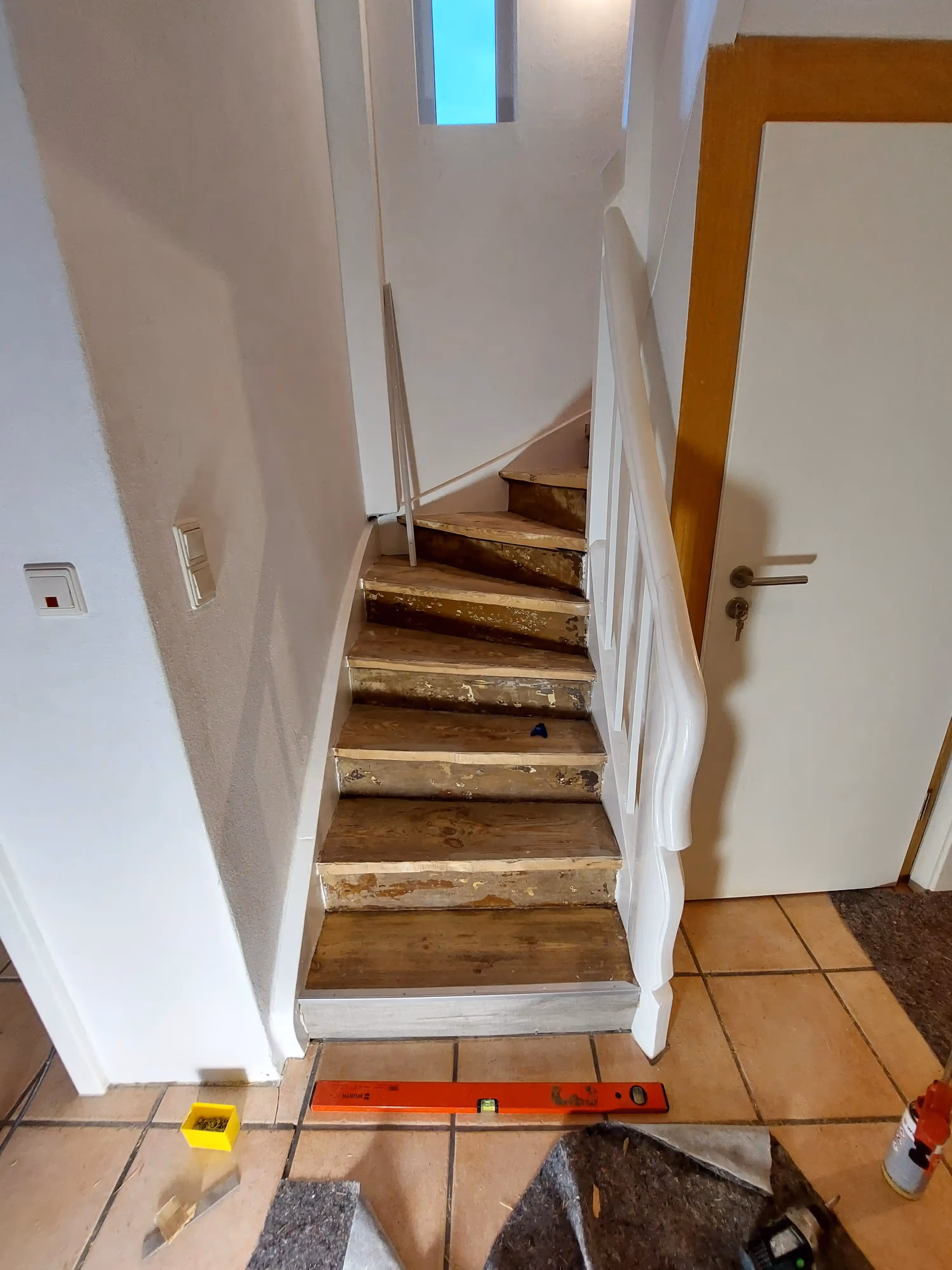 Parkett schleifen und versiegeln, Vinylboden verlegen, Maßgefertigte Garderobe bauen, Neue Türen einbauen, Treppe mit Vinyl renovieren