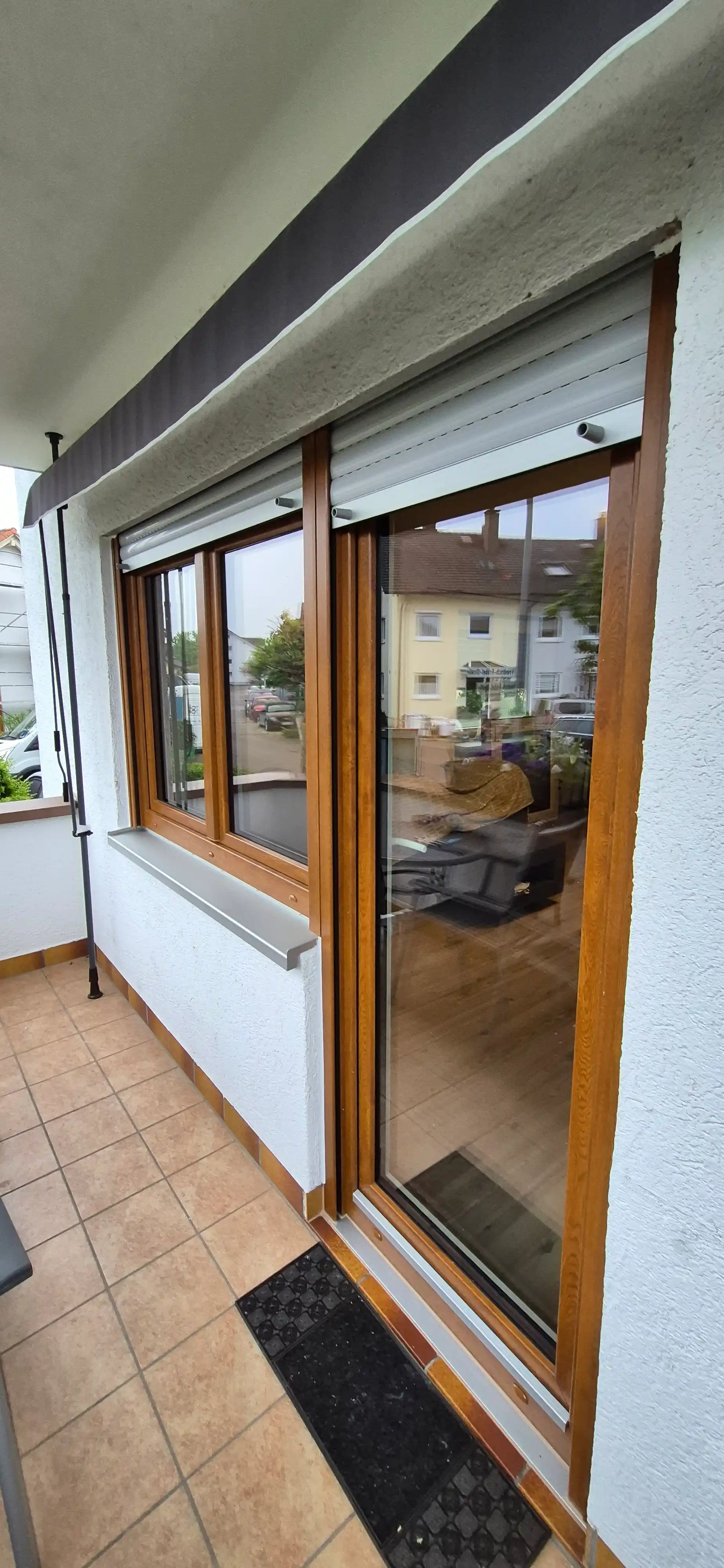 3-fach-Verglasung, außen Golden Oak, innen Weiß, komplette Umsetzung inklusive Insektenschutz, Rollladen und Fensterbänke staatlich gefördert